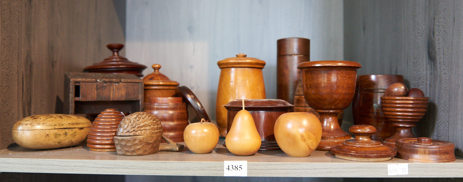 A SHELF OF ASSORTED TREEN BOXES, LEONARD JOEL LOCAL DELIVERY SIZE: SMALL