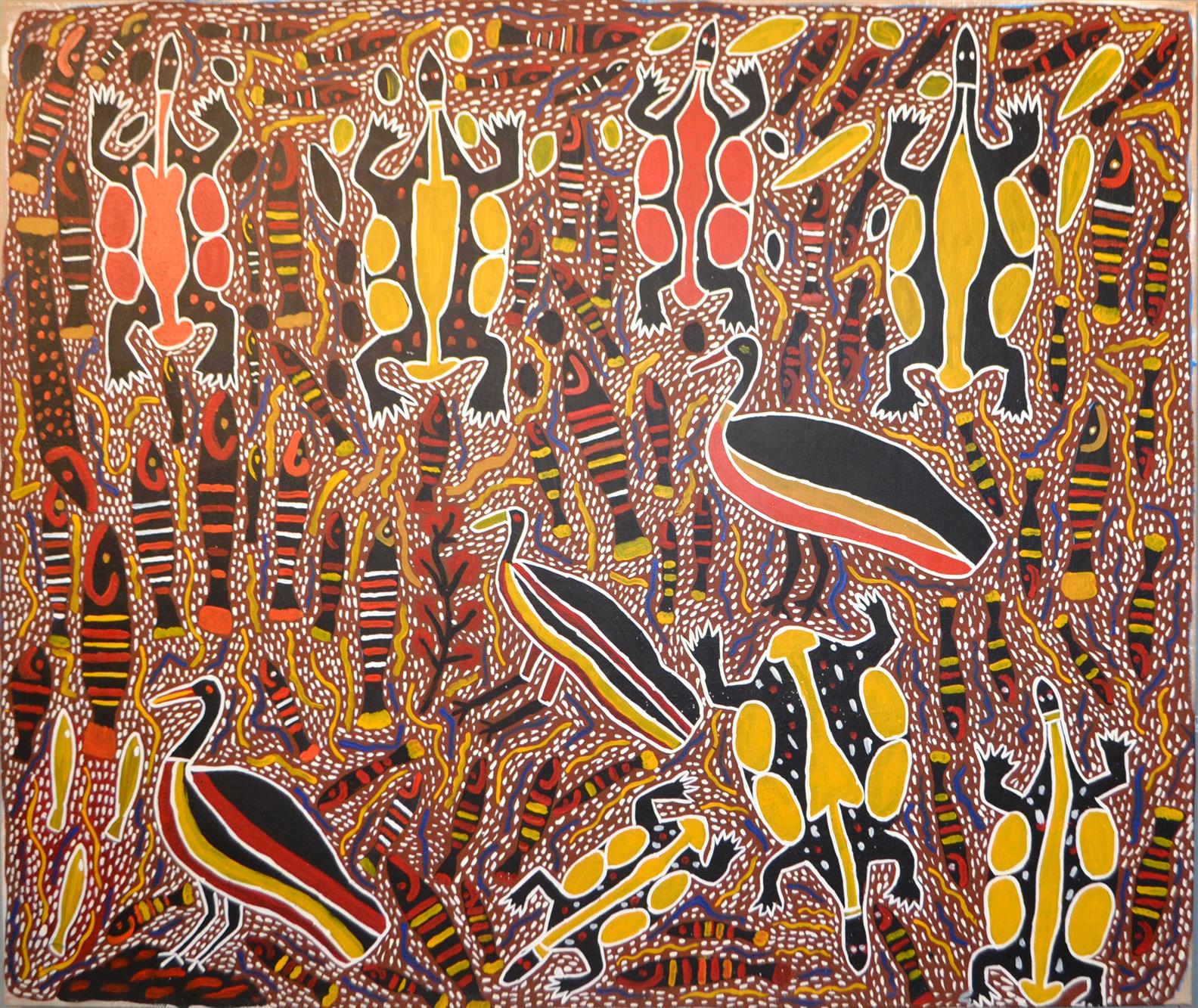 AMY JIRWULURR JOHNSON, UNTITLED 1993, ACRYLIC ON COTTON DUCK, 120 X 100CM, ACCOMPANIED BY CERTIFICATE OF AUTHENTICITY FROM ALCASTON GALLERY, CAT NO. AK2206