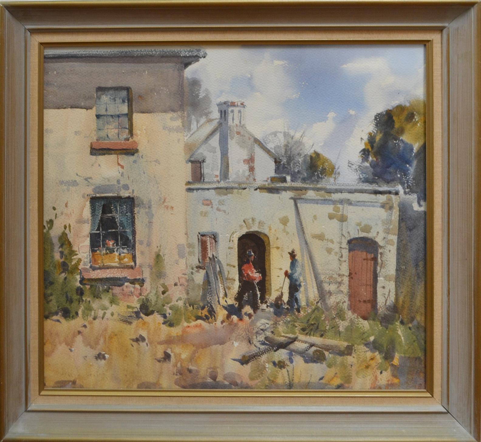 JOHN LOXTON, FARM COURTYARD, WATERCOLOUR, 47 X 52CM, FRAME SIZE: 60 X 64CM. LEONARD JOEL DELIVERY SIZE: MEDIUM