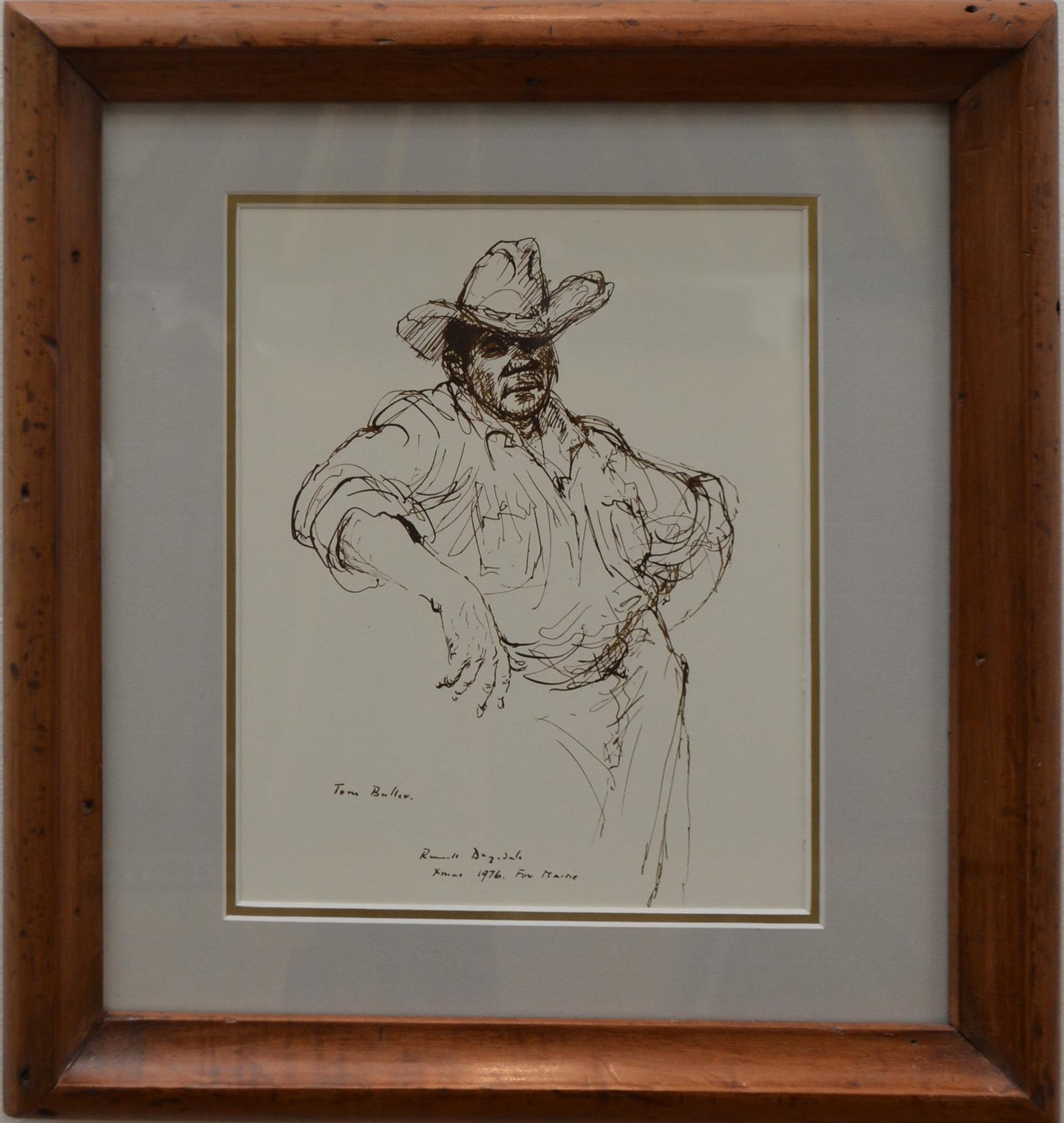 RUSSELL DRYSDALE, STOCKMAN, LITHOGRAPH, 26 X 21CM, FRAME: 43 X 39CM, CONDITION: VERY GOOD, LEONARD JOEL DELIVERY SIZE: SMALL