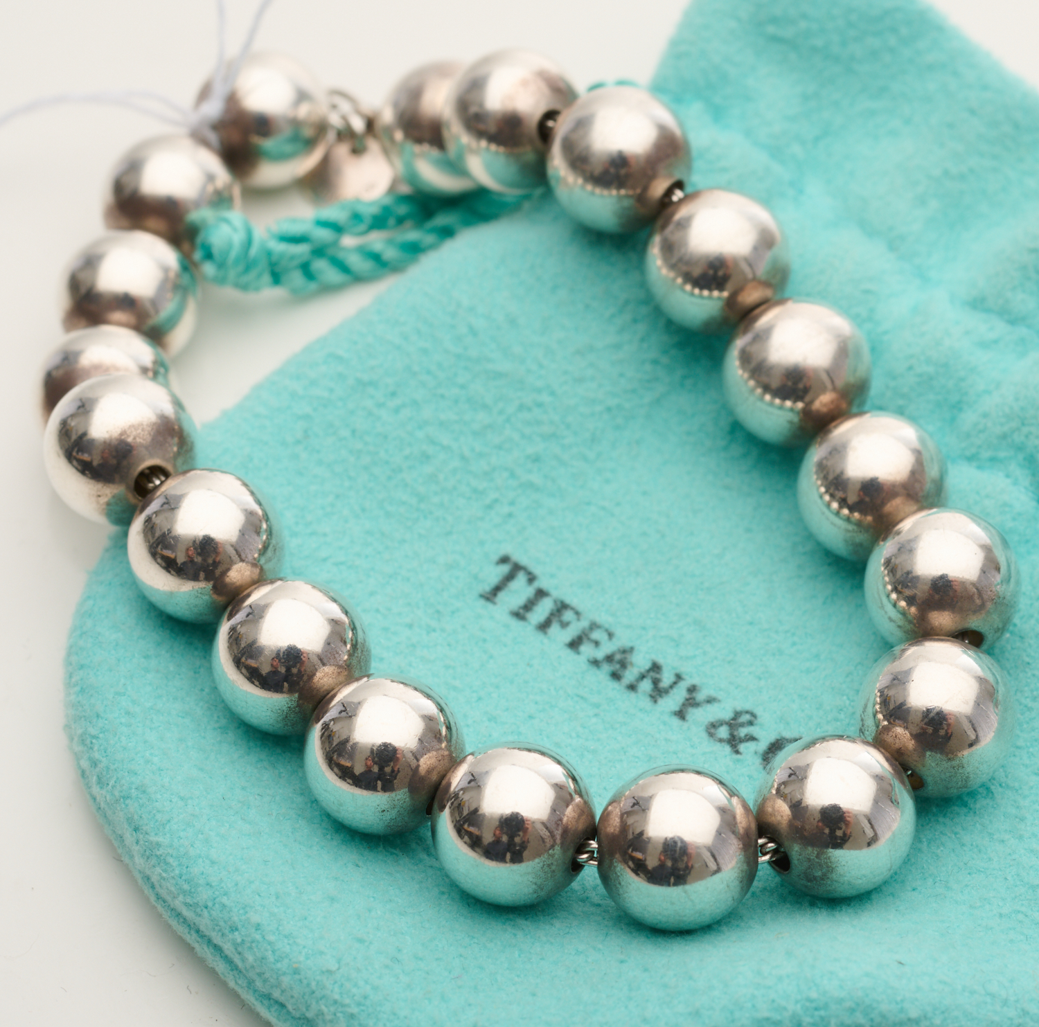 A TIFFANY & CO BALL BRACELET IN SILVER, LENGTH 20CMS, WITH POUCH