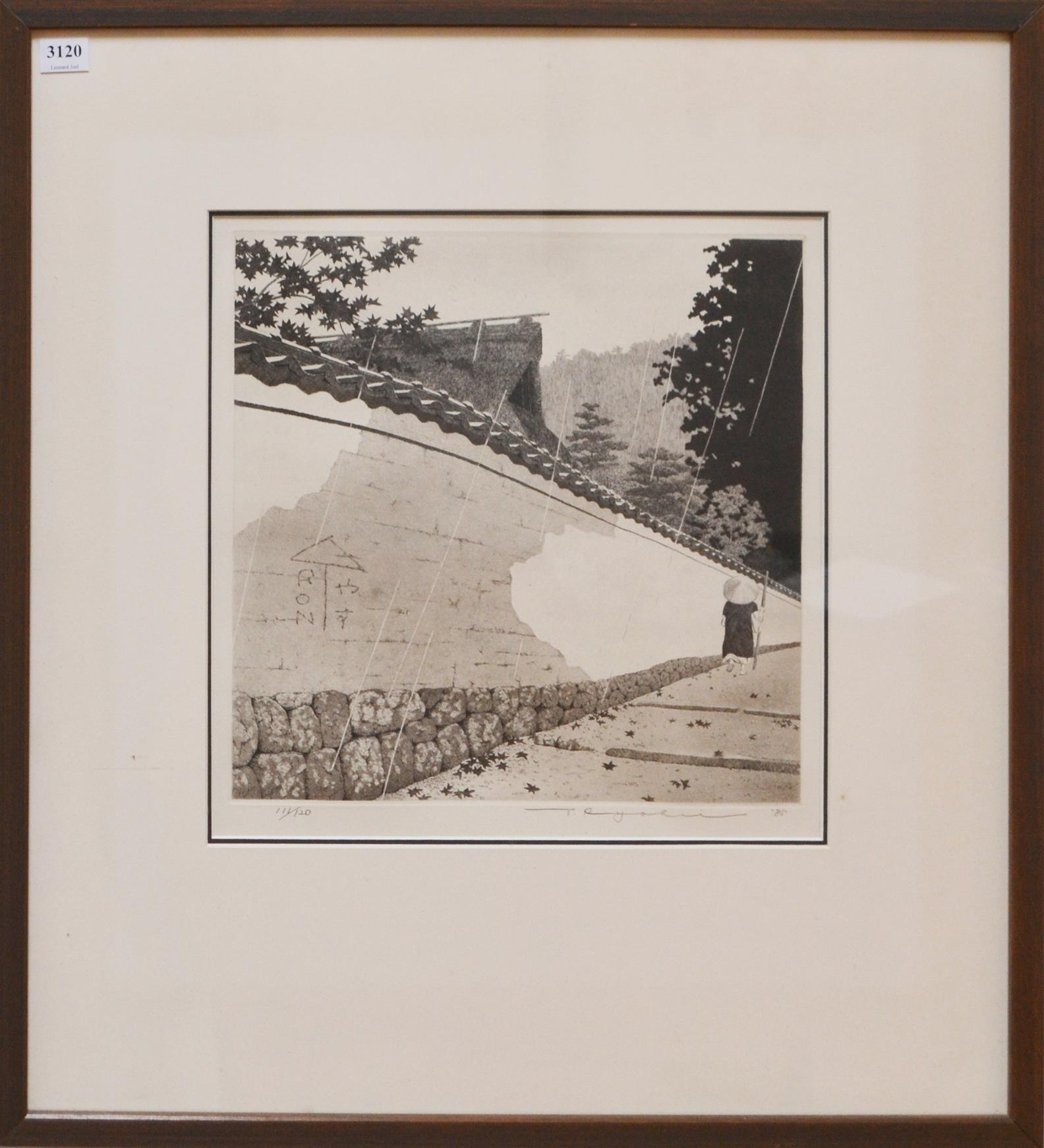 T RYOCHI, WALL 1985, ETCHING 111/120, 28 X 28CM, FRAME SIZE: 60 X 54CM