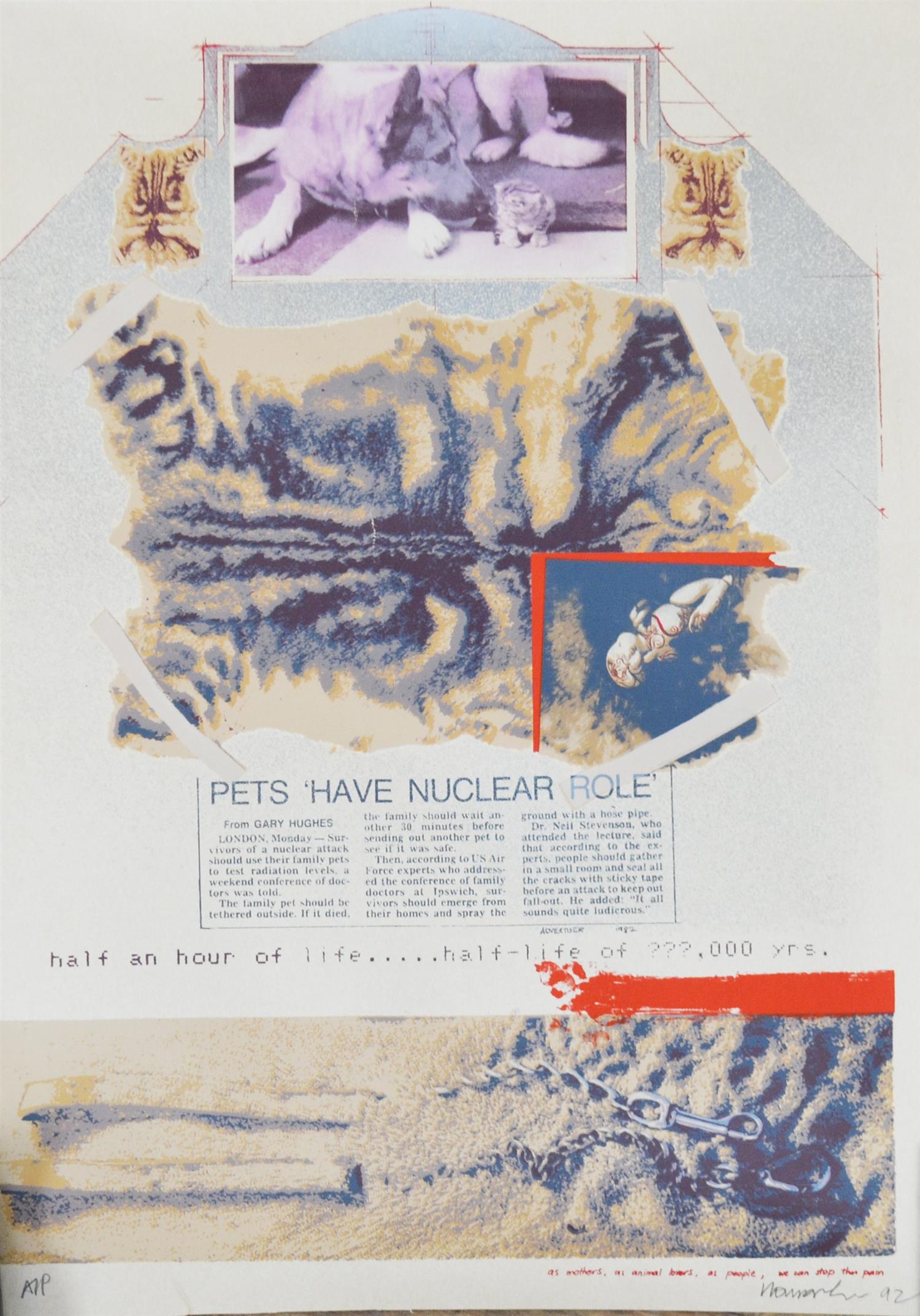 ANN NEWMARCH, AS MOTHERS, AS ANIMAL LOVERS, AS PEOPLE, WE CAN STOP THE PAIN 1992, SCREENPRINT A/P, 74 X 53CM