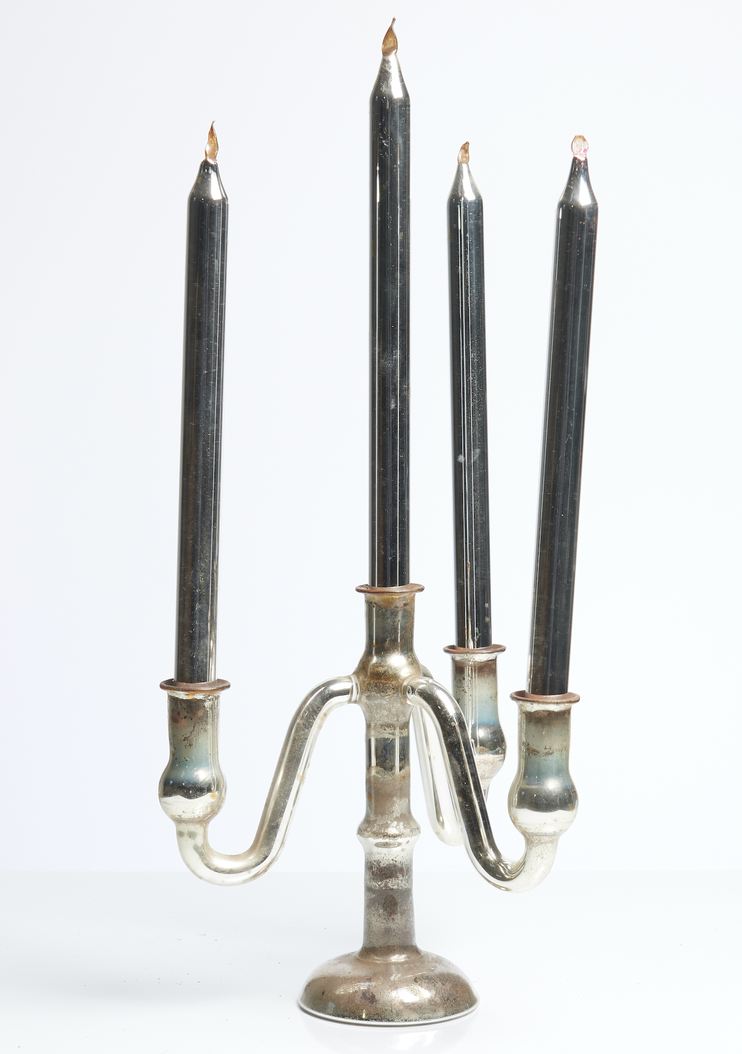 A RARE ENGLISH SILVERED MERCURY GLASS CANDELABRA