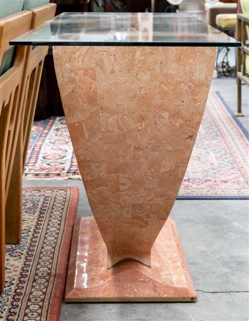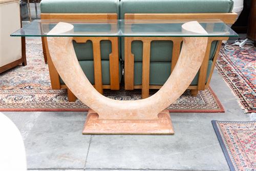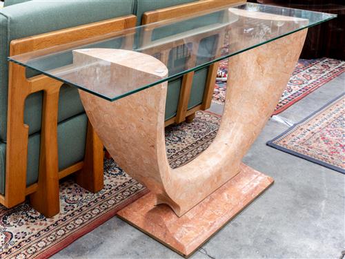 AN ITALIAN GLASS AND VENEERED STONE CONSOLE