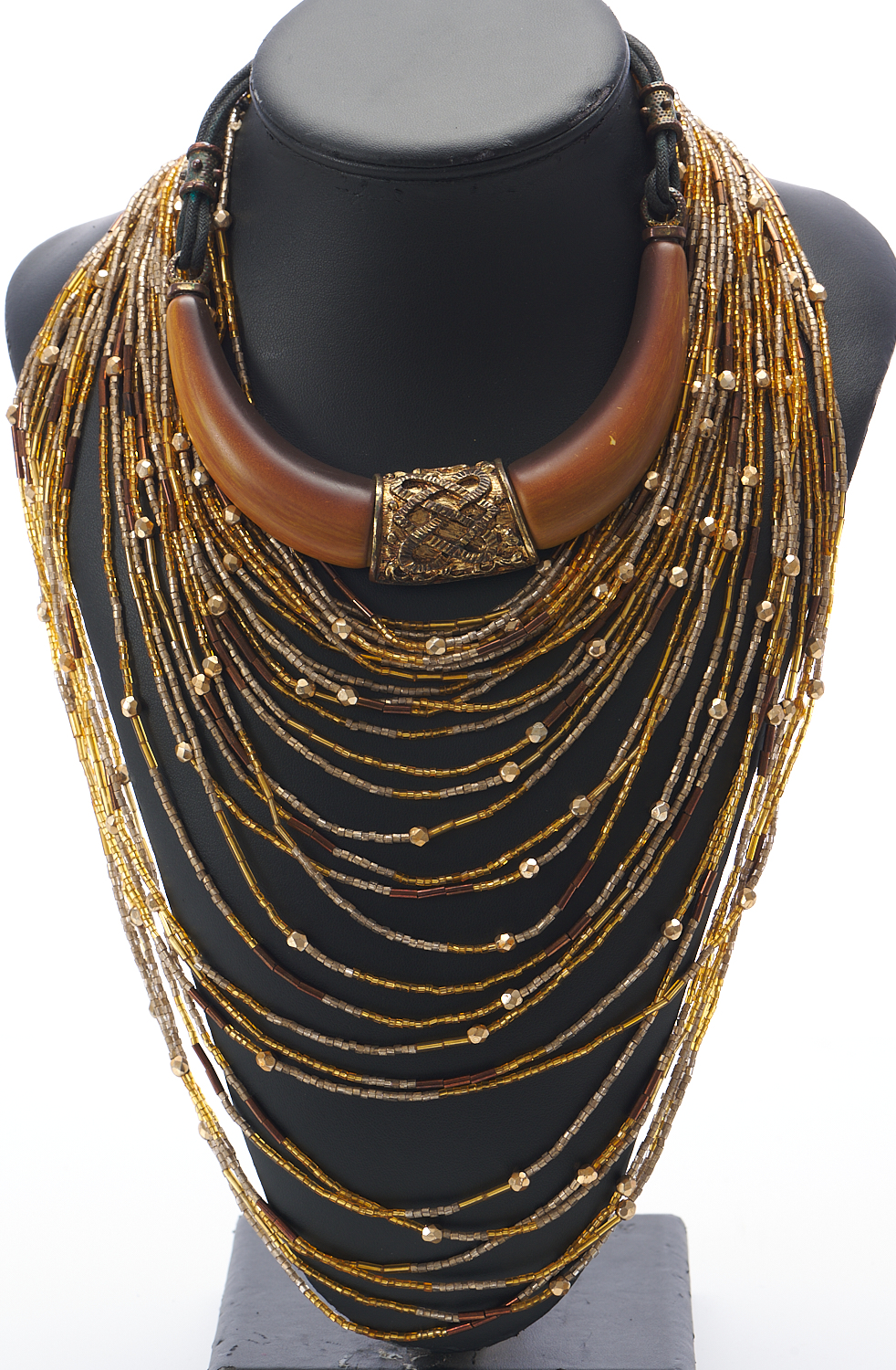 AN ART DECO INSPIRED MULTIPLE BEAD NECKLACE, TOGETHER WITH A COSTUME COLLAR NECKLACE
