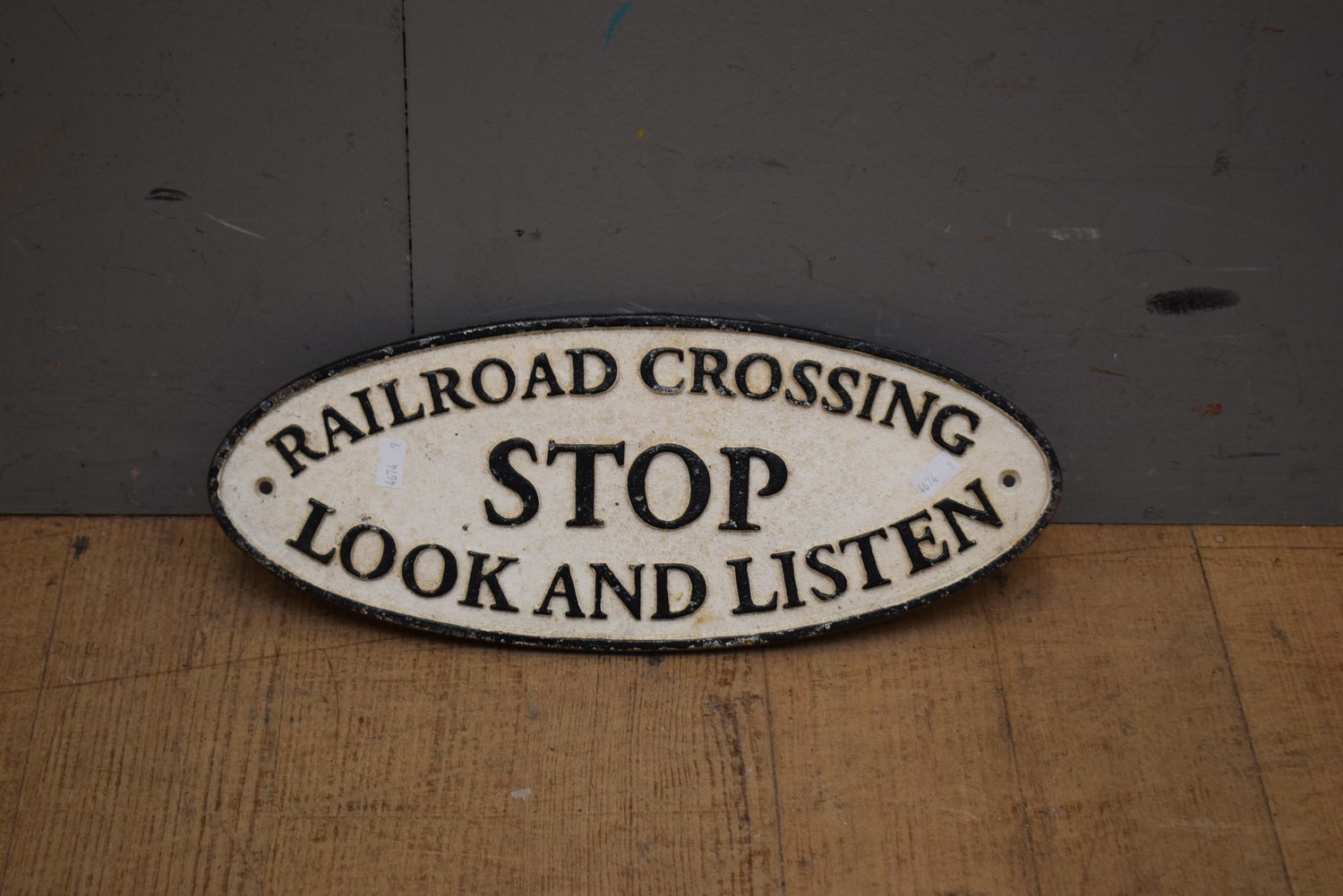 A CAST METAL RAILWAY CROSSING SIGN (38W CM) (LEONARD JOEL DELIVERY SIZE: SMALL)