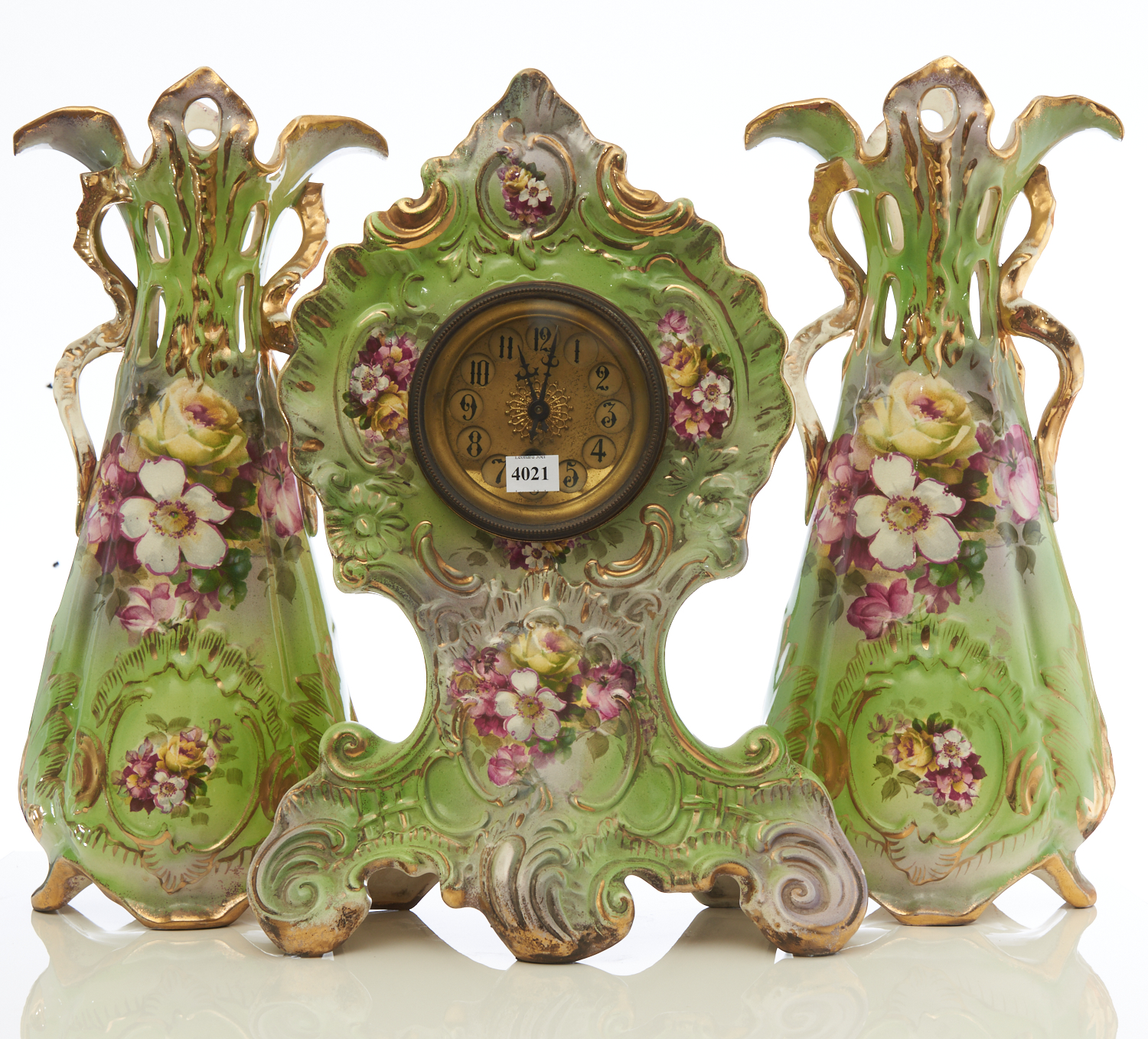 A PORCELAIN THREE PIECE GARNITURE H.44CM, LEONARD JOEL LOCAL DELIVERY SIZE: SMALL
