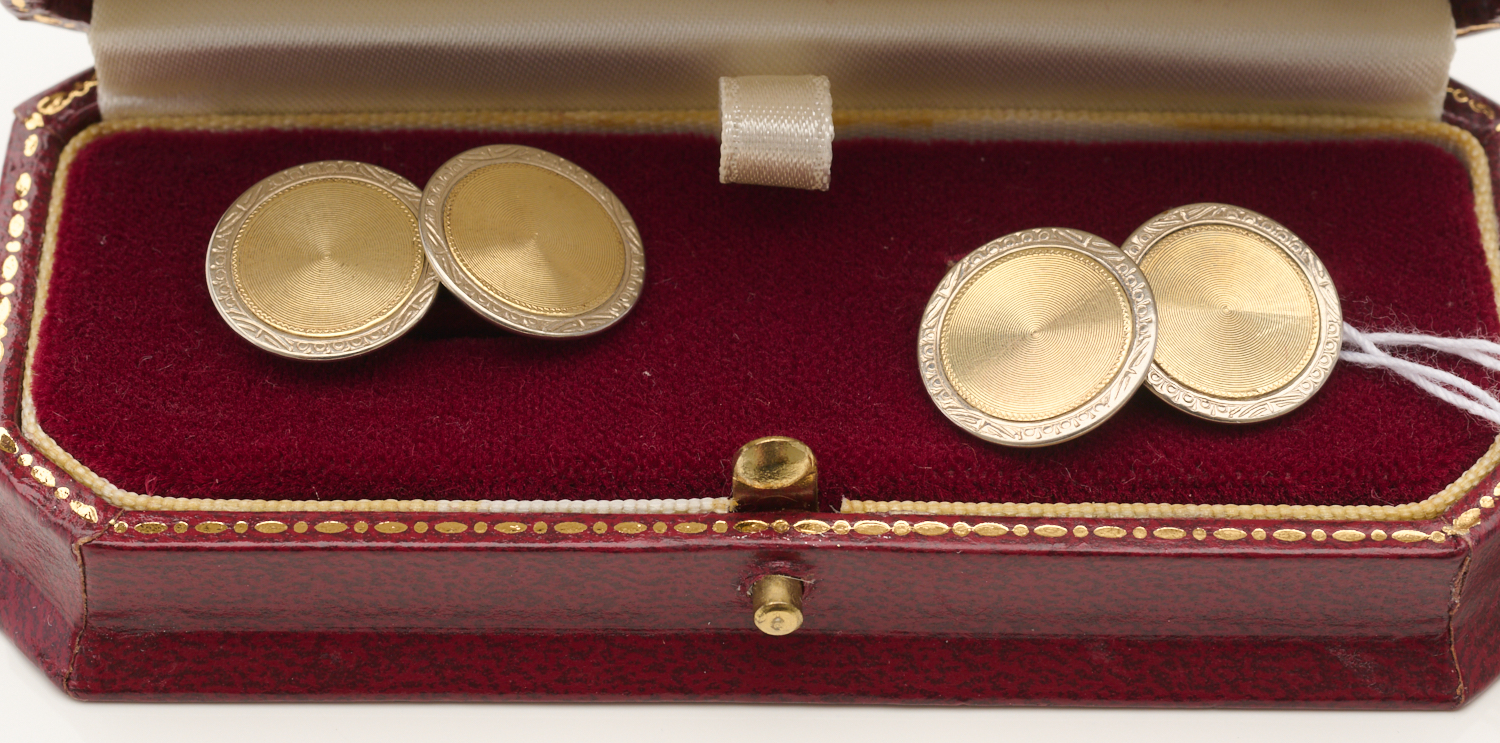 A PAIR OF CUFFLINKS WITH 14CT GOLD FRONTS, BOXED