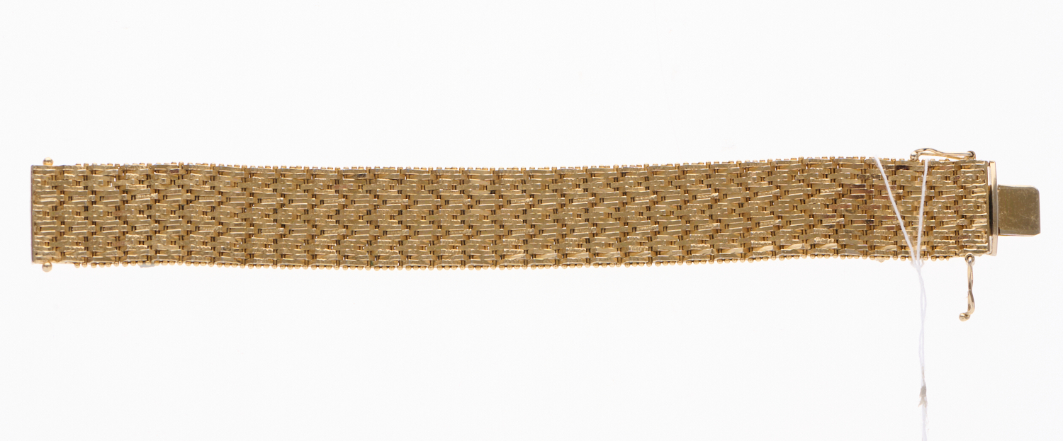 A RETRO WIDE BRACELET IN 18CT GOLD PLATED, ITALY, LENGTH 19CMS