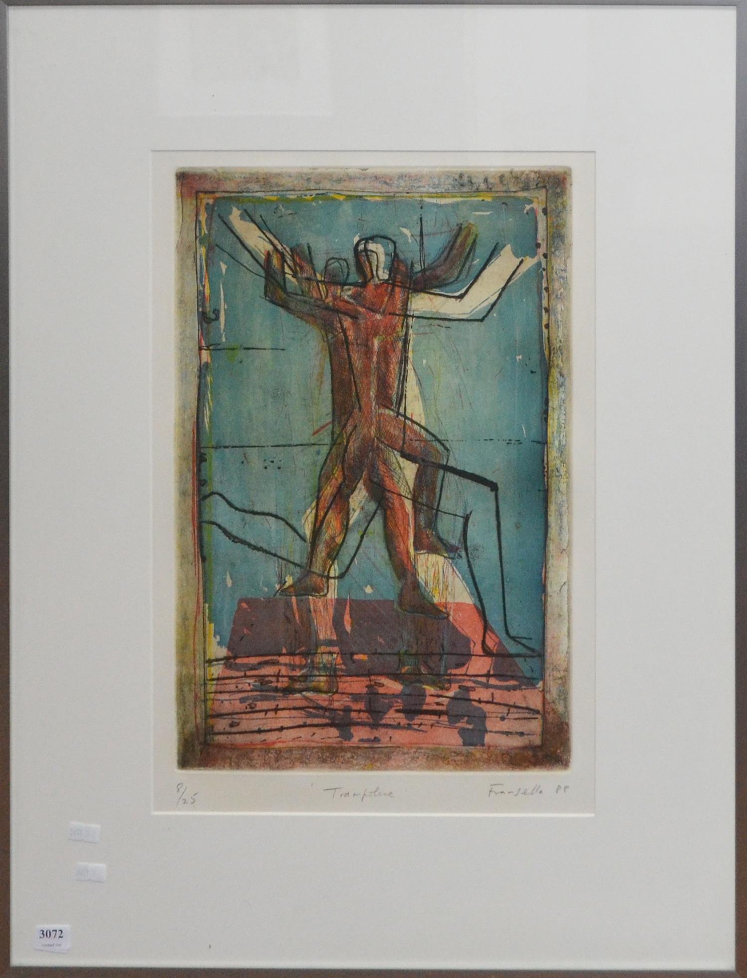 GRAHAM FRANSELLA, TRAMPOLINE 1988, ETCHING 8/25, 44 X 29CM. LEONARD JOEL DELIVERY SIZE: MEDIUM