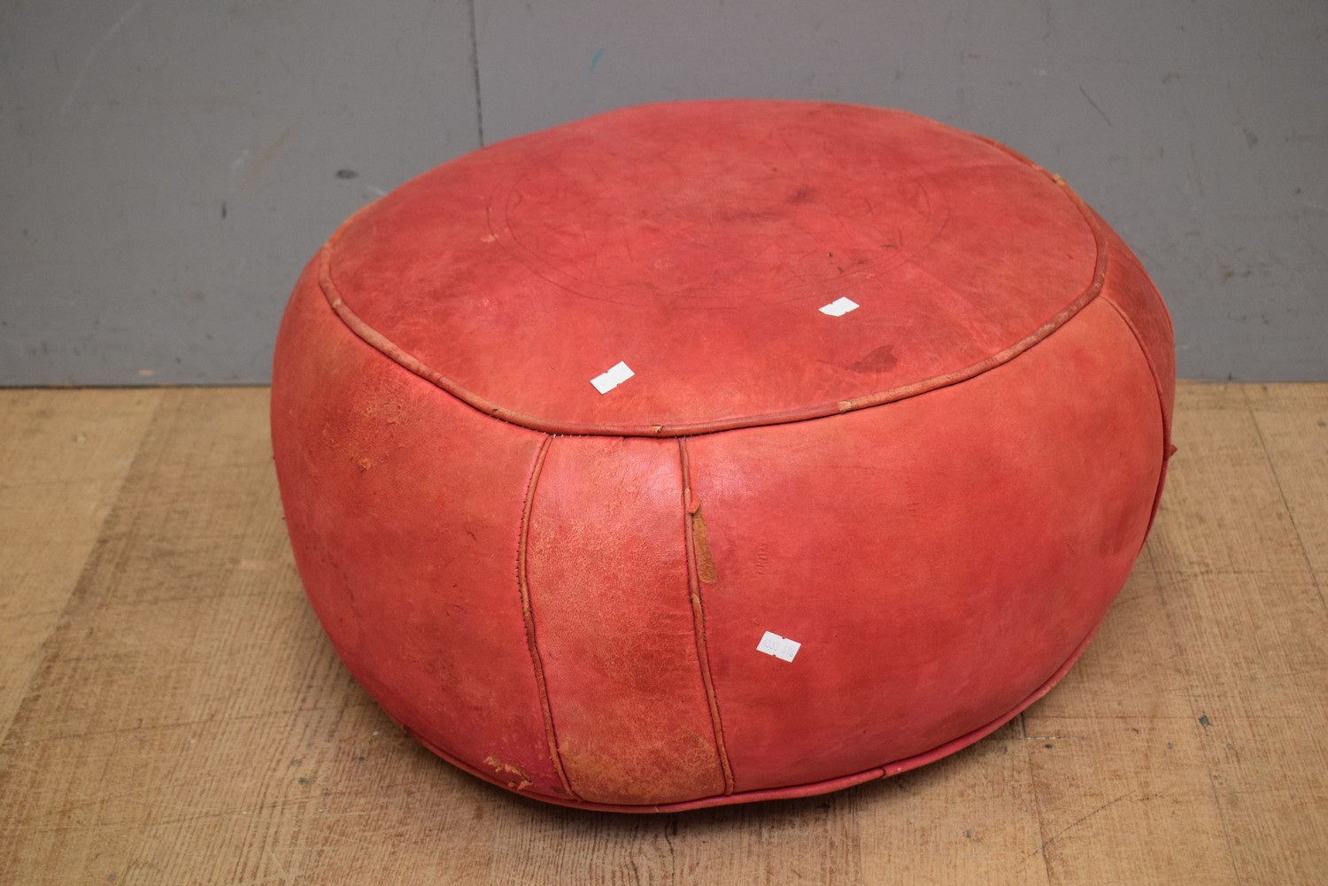 RETRO RED LEATHER 1950SW OTTOMAN POUF (28H x 60D CM) (LEONARD JOEL DELIVERY SIZE: MEDIUM)