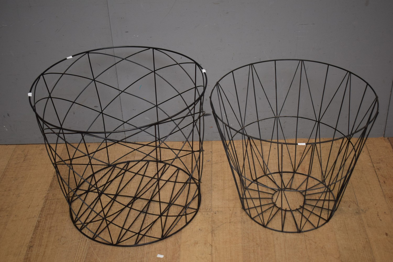 TWO LARGE 1940S INDUSTRIAL WIRE BASKETS (LARGEST 51H X 60D CM) (LEONARD JOEL DELIVERY SIZE: SMALL)