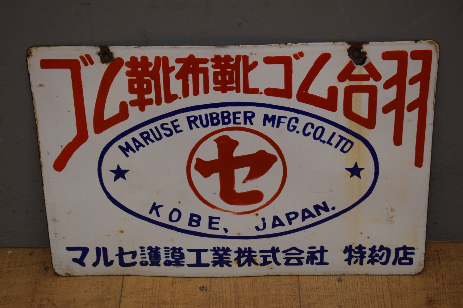 A 1920S INDIAN DOUBLE SIDED EMNAMEL SIGN MARUSE RUBBER MFGH CO LTD (30 X 46 CM) (LEONARD JOEL DELIVERY SIZE: SMALL)