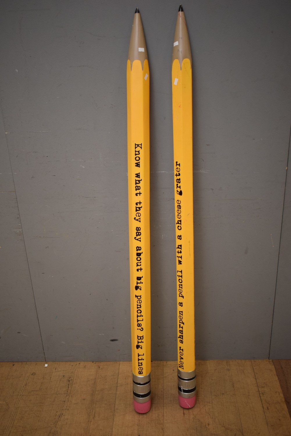 TWO OVERSIZE NOVELTY FIBERGLASS TYPO PENCILS - EX SHOP DISPLAY (H163 CM) (LEONARD JOEL DELIVERY SIZE: MEDIUM)