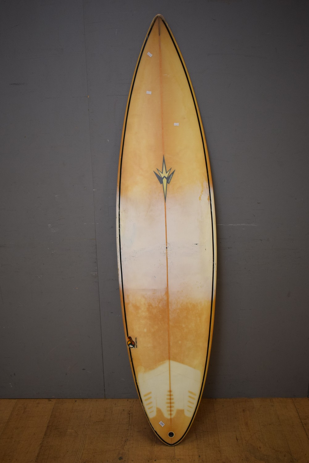 AN AUSTRALIAN MADE TWIN FIN FIBERGLASS SURFBOARD BY MAYA GABEIRA FOR WET WORKS (196 X 47 CM) (LEONARD JOEL DELIVERY SIZE: LARGE)