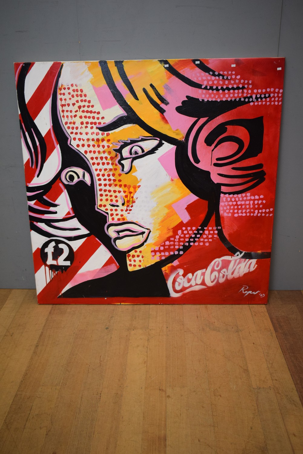 LARGE ORIGINAL OIL ON CANVAS COCA COLA GIRL BY ROPAR SIGNED & DATED (150H X 150W CM) (LEONARD JOEL DELIVERY SIZE: LARGE)