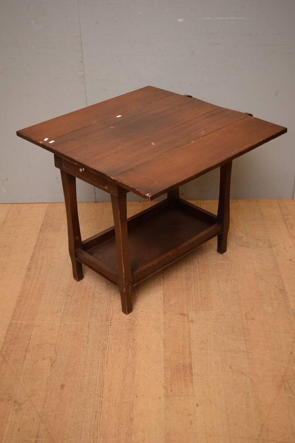 A 1940S AUSTRALIAN HARDWOOD 2 TIER AUTO TROLLEY WITH SINGLE DRAWER AND 2 FLAPS (A/F) (68H X 80W X 84D CM) (LEONARD JOEL DELIVERY SIZE: MEDIUM)