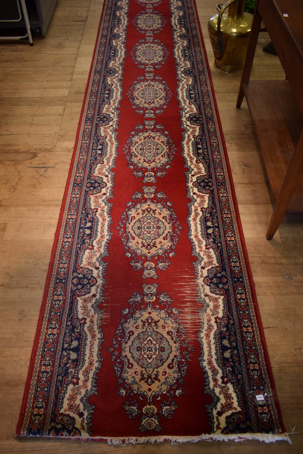 A SUPERB PERSIAN RED TONED WOOLLEN HALL RUNNER (750L x 91W CM) (LEONARD JOEL DELIVERY SIZE: LARGE)