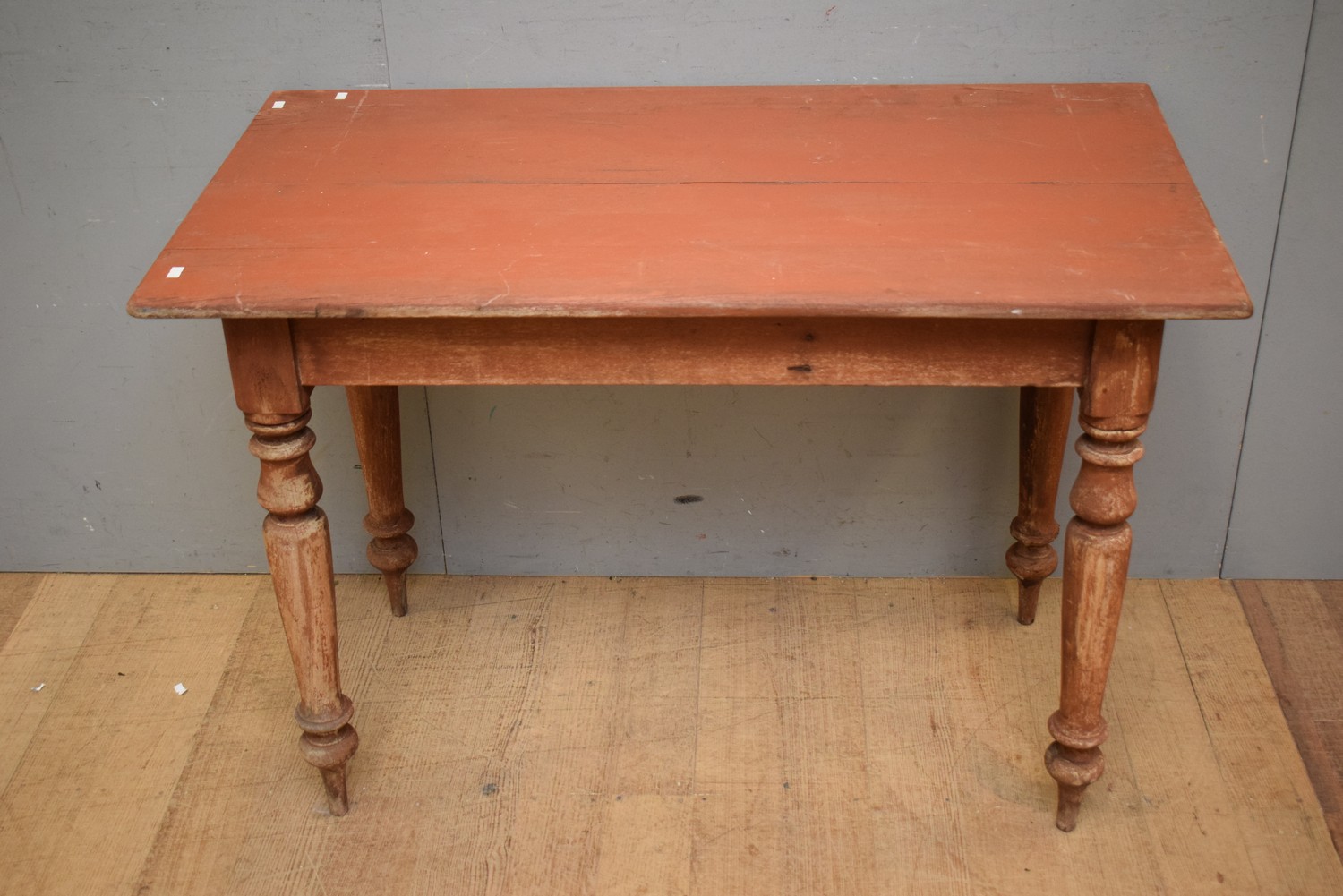 A RUSTIC PAINTED AUSTRALIAN PINE SMALL FARMHOUSE TABLE (A/F) (H74 X W107 X D59 CM) (LEONARD JOEL DELIVERY SIZE: LARGE)