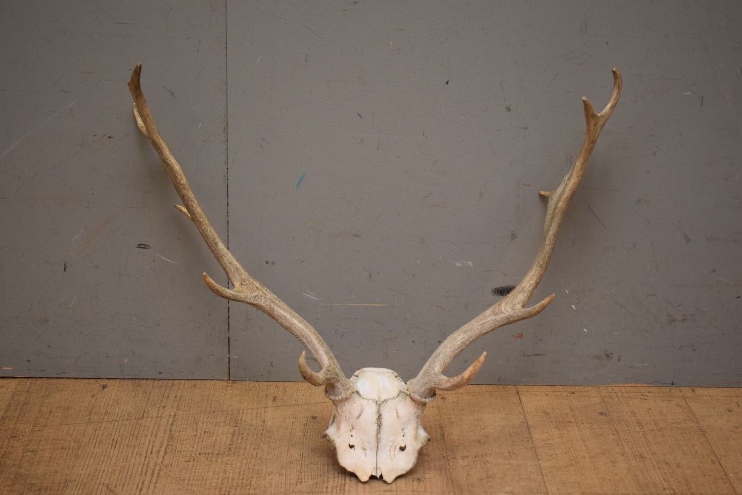 A SET OF TASMANIAN SKULL MOUNT FALLOW DEER ANTLERS (45H x 58W CM) (LEONARD JOEL DELIVERY SIZE: SMALL)
