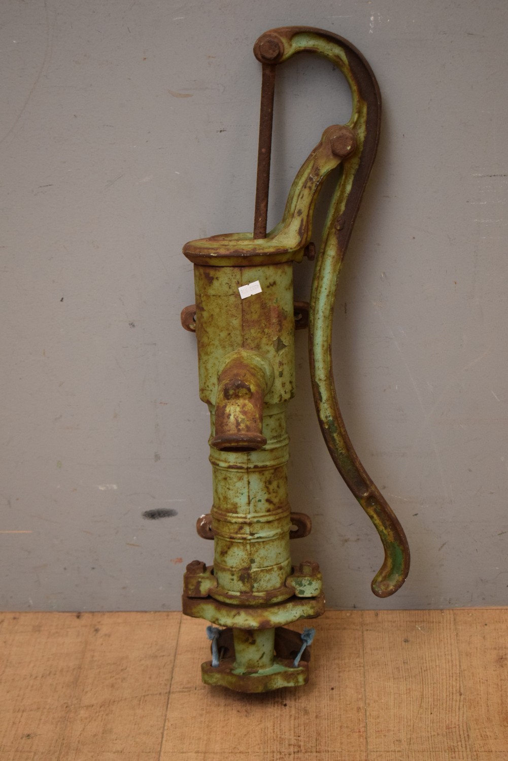 A 19TH CENTURY FRENCH CAST IRON PAINTED GREEN WATER PUMP (H72 CM) (LEONARD JOEL DELIVERY SIZE: MEDIUM)