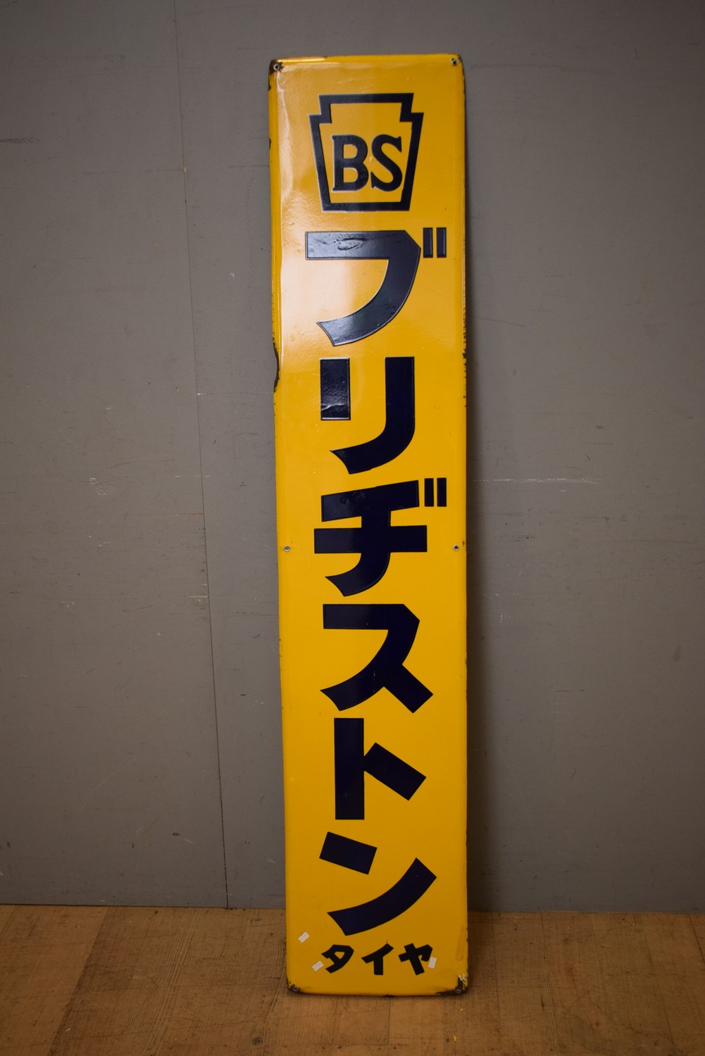 A LARGE 1930S JAPANESE RECTANGULAR BLUE AND YELLOW ENAMEL SHOP SIGN - BS (181H X 36W CM) (LEONARD JOEL DELIVERY SIZE: MEDIUM)