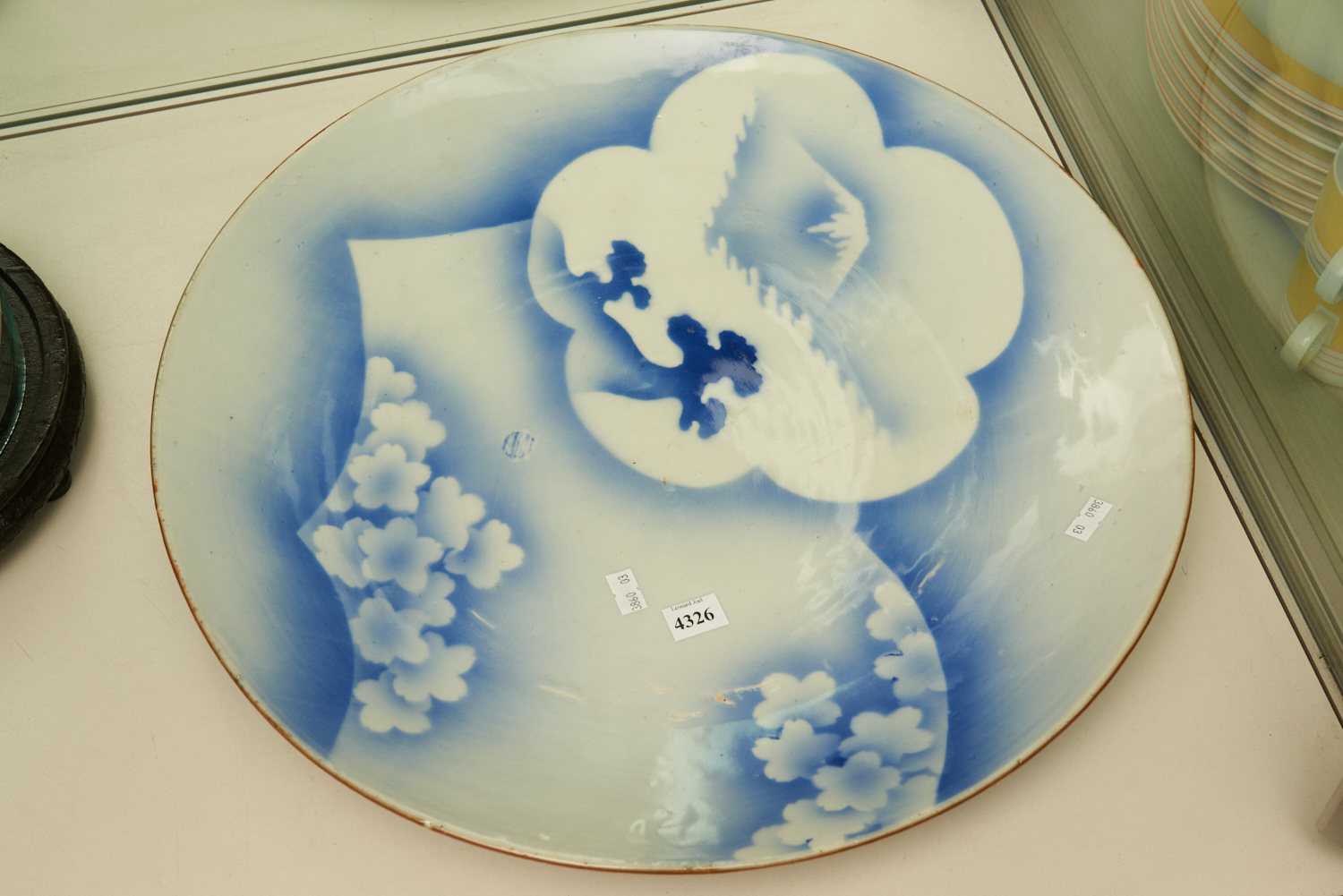 A JAPANESE BLUE & WHITE CHARGER WITH MOUNTAIN AND TREE DECORATIONS, LEONARD JOEL LOCAL DELIVERY SIZE: SMALL