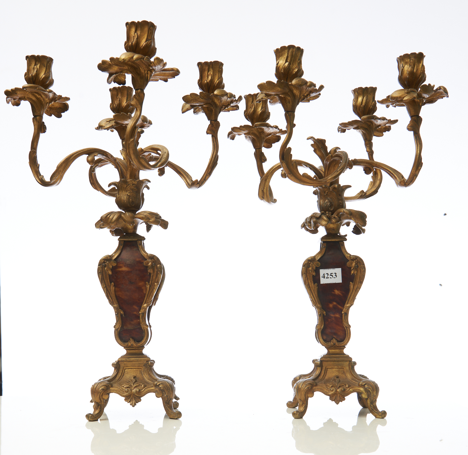 PAIR OF 19TH CENTURY GILT BRONZE AND TORTOISESHELL FOUR SCONCE CANDELABRA, LEONARD JOEL LOCAL DELIVERY SIZE: SMALL