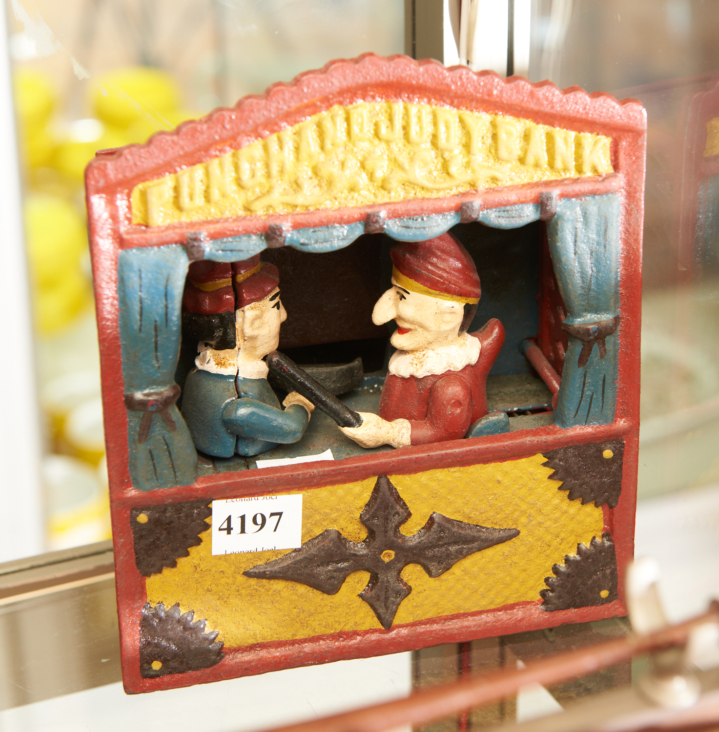 CAST IRON PUNCH & JUDY MECHANICAL MONEY BOX, LEONARD JOEL LOCAL DELIVERY SIZE: SMALL