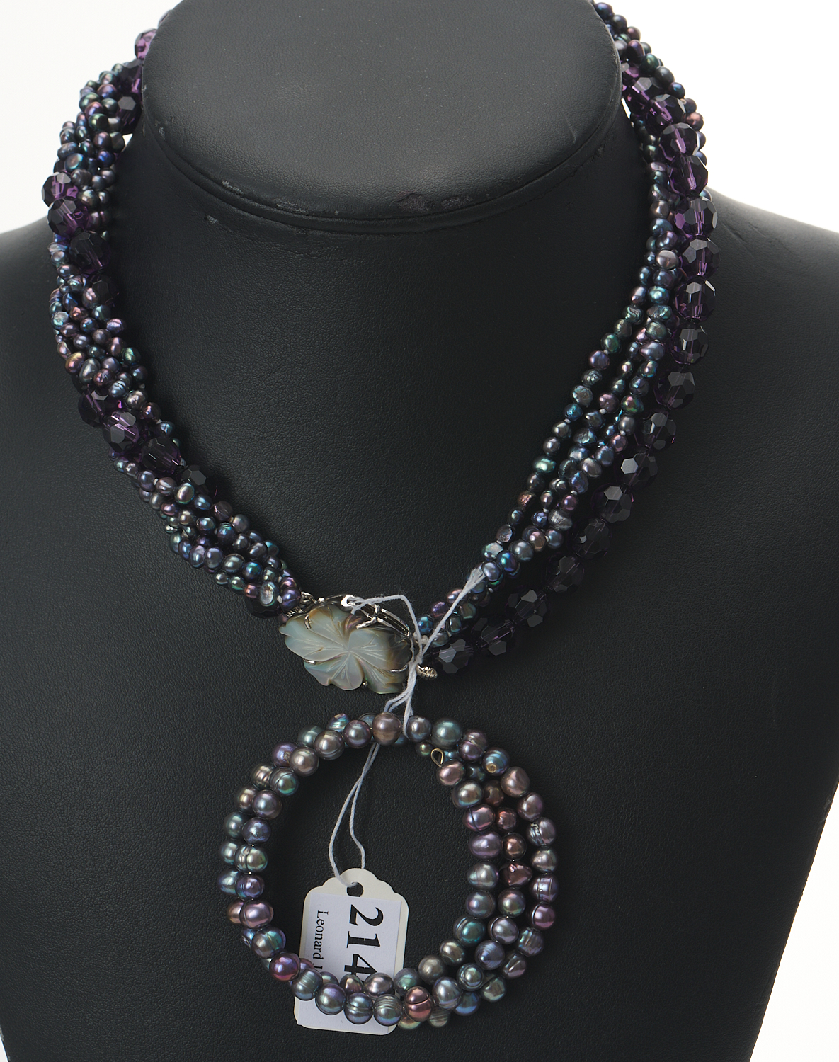 A MULTI STRAND FRESHWATER PEARL NECKLACE WITH CARVED MOTHER OF PEARL CLASP WITH AN FRESHWATER BRACELET