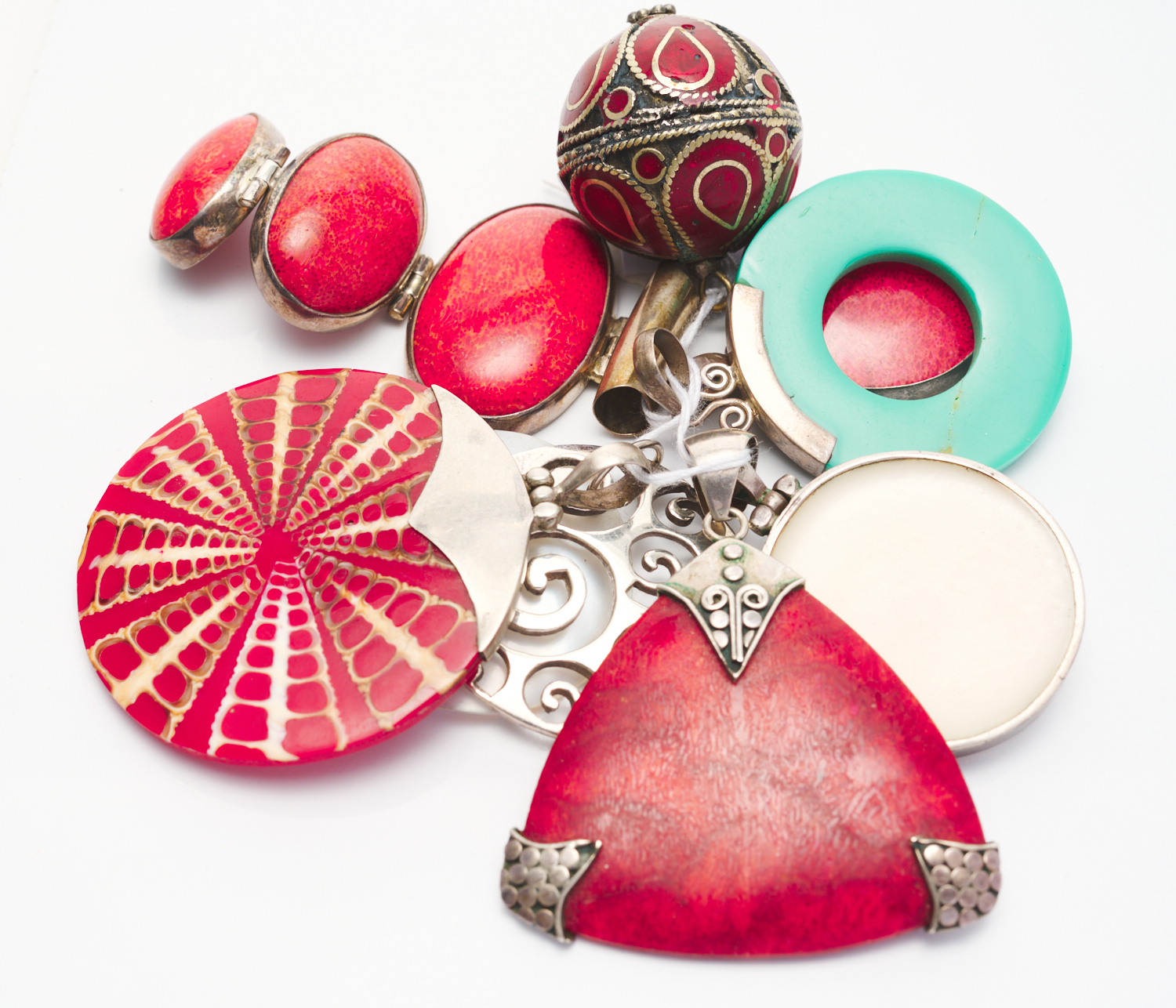 A COLLECTION OF EIGHT SILVER PENDANTS INCLUDING ENAMEL AND STONE SET