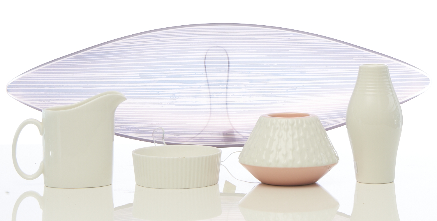 A COLLECTION OF WEDGWOOD AND ROYAL DOULTON CERAMIC AND GLASS DISHES/VASES, LEONARD JOEL LOCAL DELIVERY SIZE: SMALL