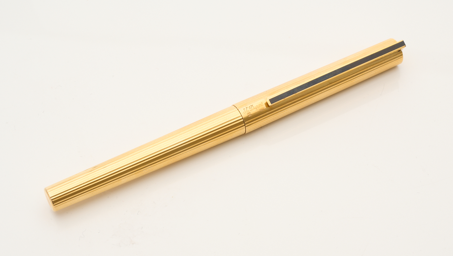 A VINTAGE DUPONT FOUNTAIN PEN, THE NIB IN 18CT GOLD, BOXED