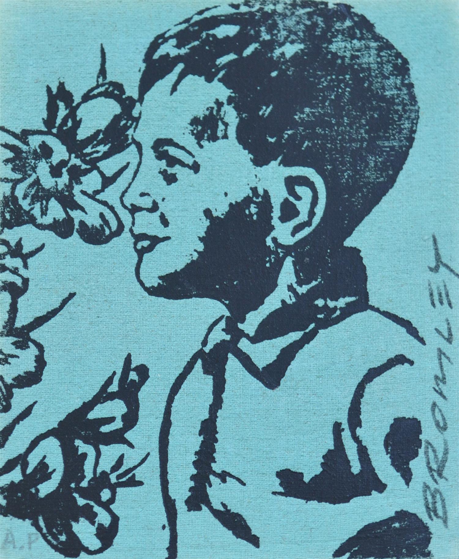 DAVID BROMLEY, BOY AND FLOWERS, SCREENPRINT A/P ON CANVASBOARD, 25 X 20CM