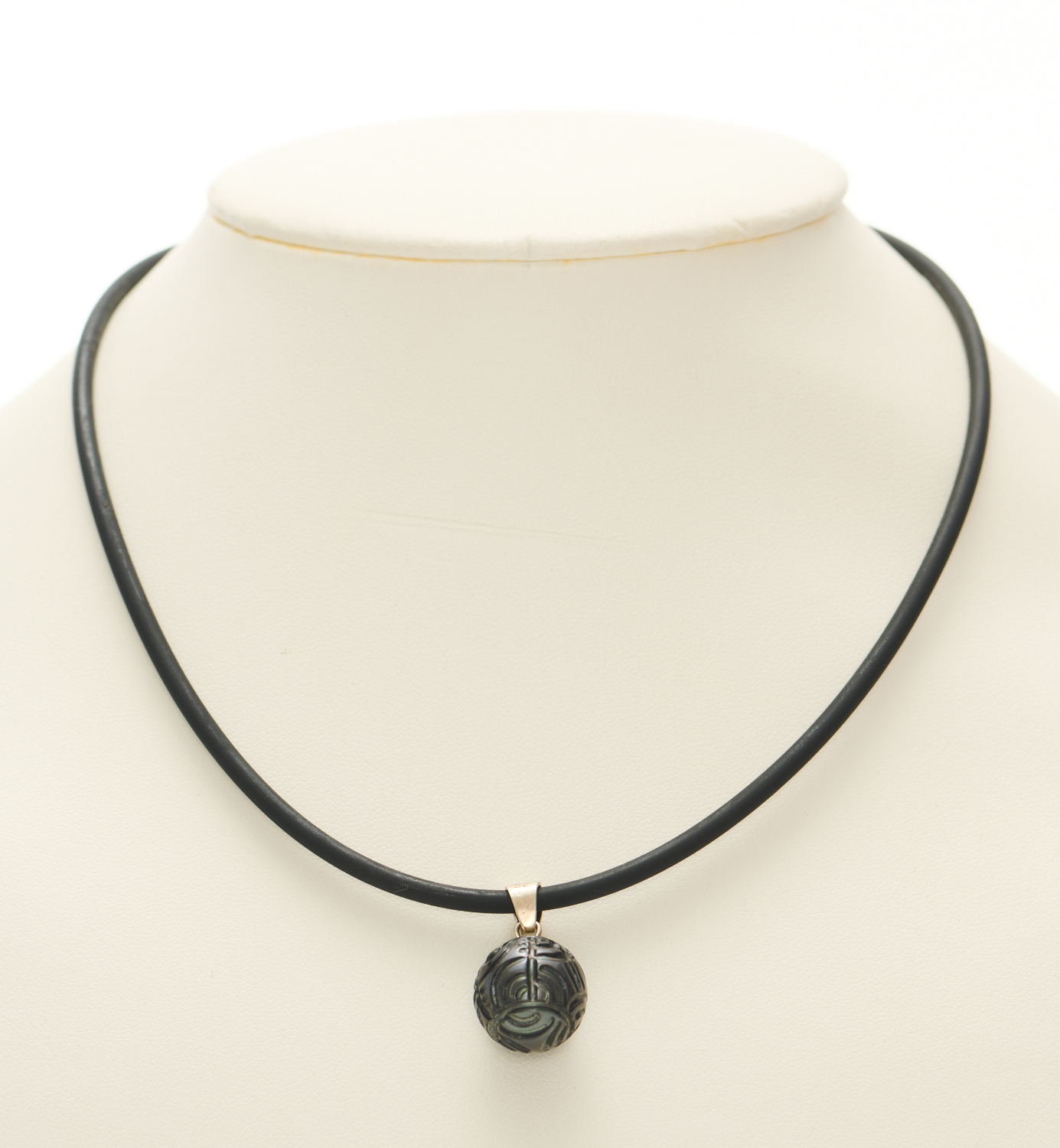 A TAHITIAN CARVED PEARL PENDANT TO A NEOPRENE COLLAR NECKLACE, DIAMETER OF THE PEARL 14MM