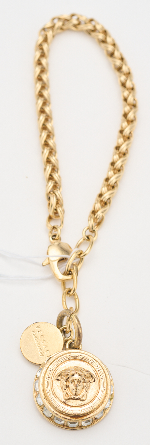 A VINTAGE PENDANT BRACELET BY VERSACE - With clear stone set charm, total length 2200mm.