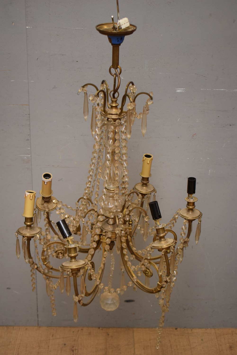19TH CENTURY FRENCH LOUIS XVI BRONZE & CRYSTAL CHANDELIER C.1900'S (A/F) (H84 CM) (LEONARD JOEL DELIVERY SIZE: MEDIUM)