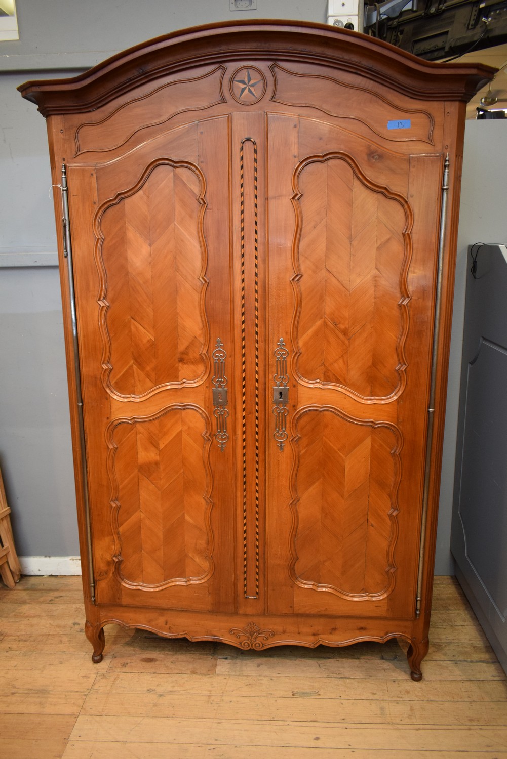 18TH CENTURY FRENCH PROVINCIAL CHERRYWOOD 2 DOOR ARMOIRE C.1780'S COMPLETE WITH 4 SHELVES & A KEY (A/F) (H224 X W150 X D65 CM) (PLEASE NOTE THIS HEAVY ITEM MUST BE REMOVED BY CARRIERS AT THE CUSTOMER'S EXPENSE. LEONARD JOEL STAFF CANNOT ASSIST CARRYING THIS ITEM) (X-LARGE ITEM)