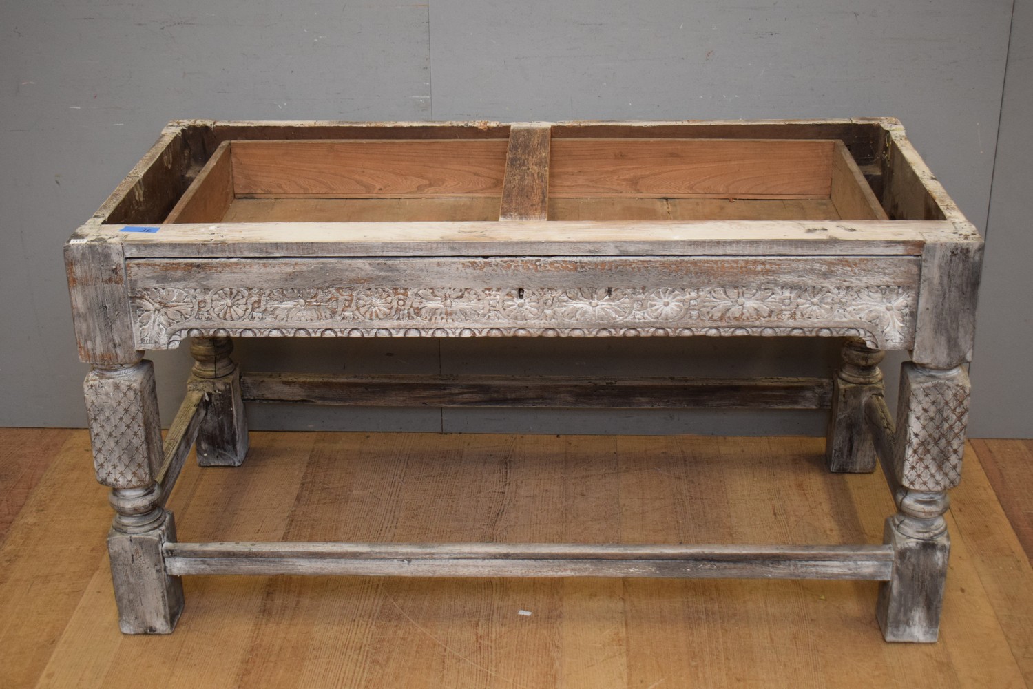 A LATE 18TH/EARLY 19TH CENTURY FRENCH FARMHOUSE TABLE - NO TOP (A/F) (72H X 139W X 69D CM) (PLEASE NOTE THIS HEAVY ITEM MUST BE REMOVED BY CARRIERS AT THE CUSTOMER'S EXPENSE. LEONARD JOEL STAFF CANNOT ASSIST CARRYING THIS ITEM) (X-LARGE ITEM)