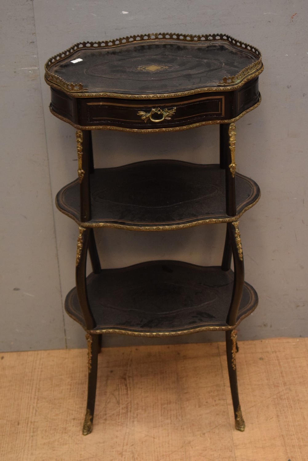 A FRENCH LOUIS XVI STYLE EBONISED ETAGERE