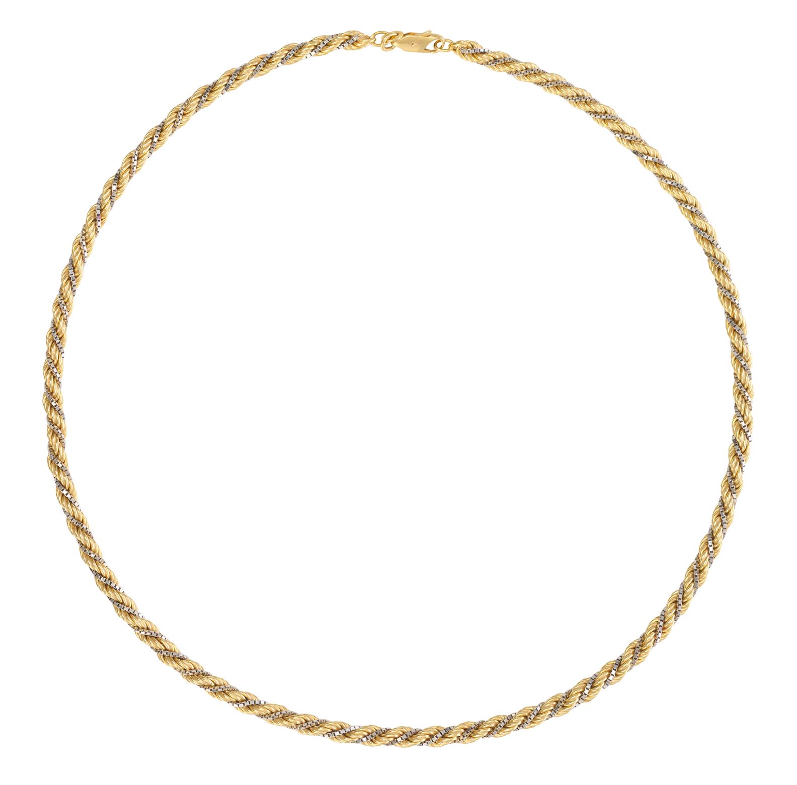 A NECKLACE IN TWO TONE 18CT GOLD, LENGTH: 440MM.