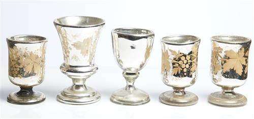 FIVE ENGLISH MERCURY GLASS GOBLETS
