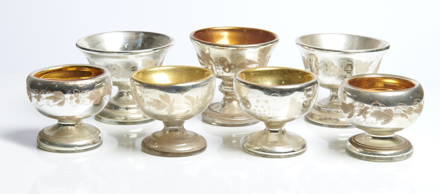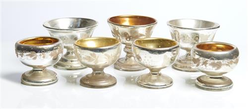 SEVEN ENGLISH MERCURY GLASS FOOTED BOWLS