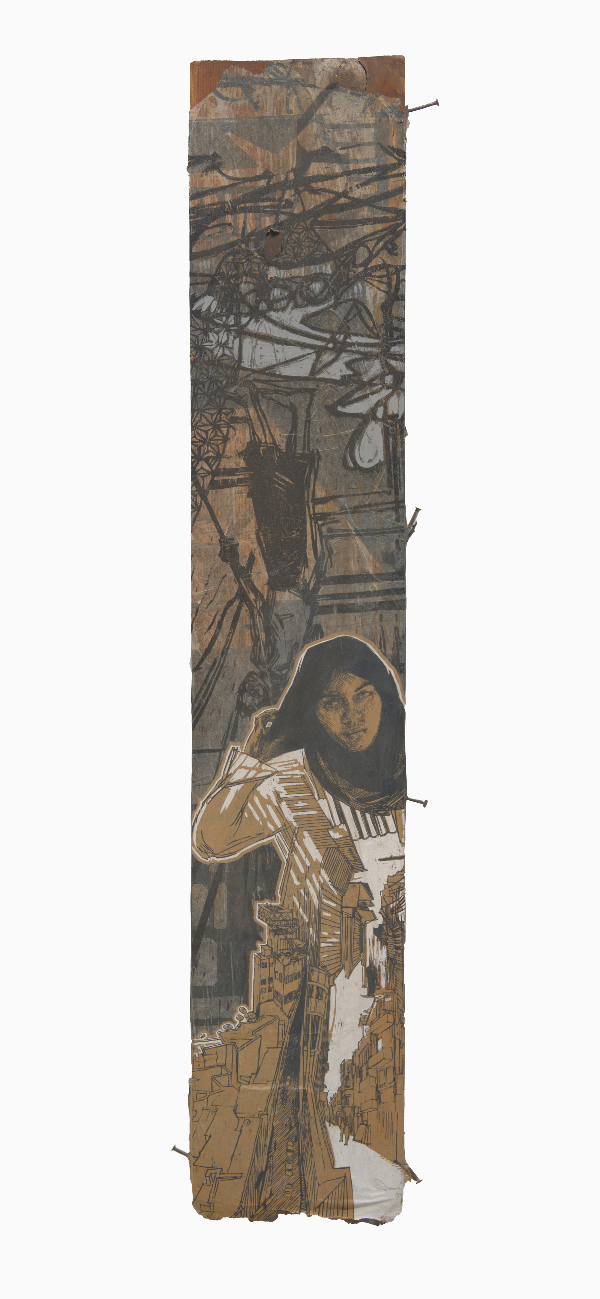 Caledonia Curry, a.k.a. Swoon, creates street art, installations, and sculptural assemblages, merging art and activism. Swoon was not content on only exhibiting in galleries and museums and this desire drove her art into the streets where, since 1999, Swoon has been wheat-pasting life-size portraits of everyday urbanites onto walls in New York and other cities.