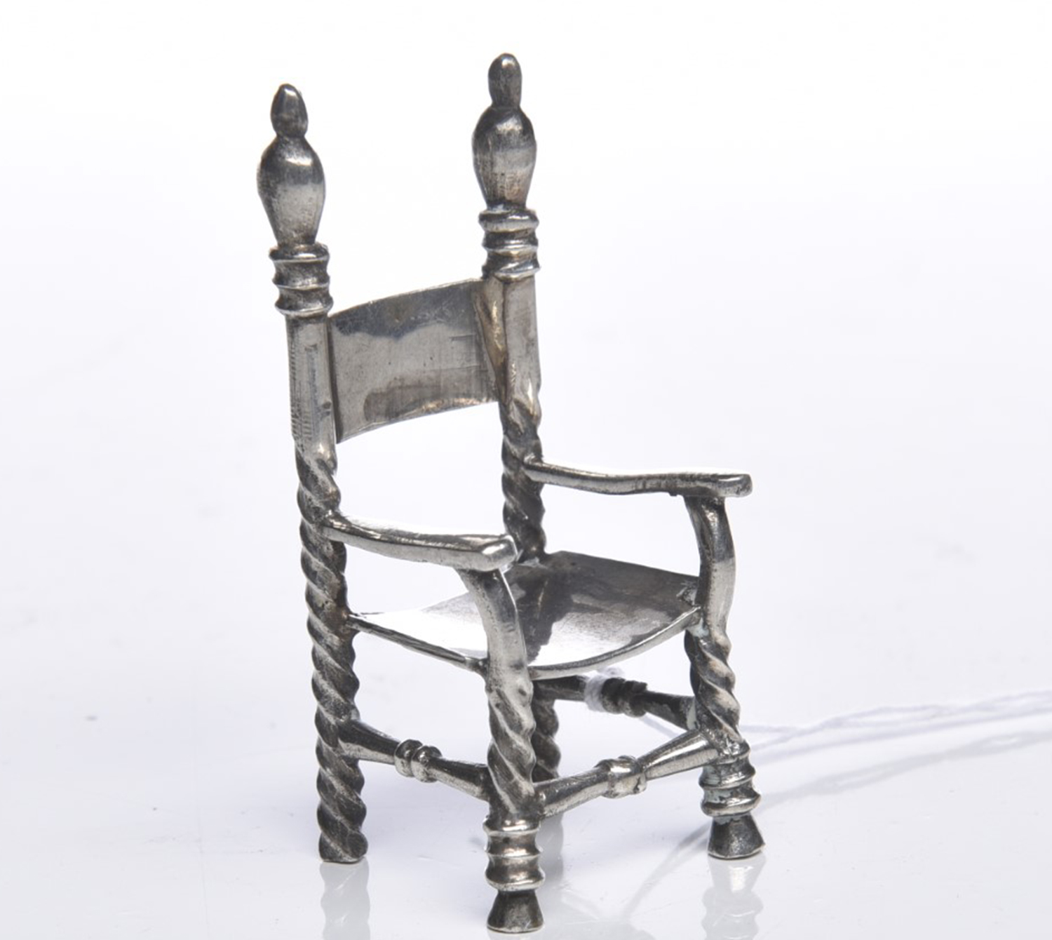 A VINTAGE STERLING SILVER MINIATURE CHAIR, LEONARD JOEL LOCAL DELIVERY SIZE: SMALL