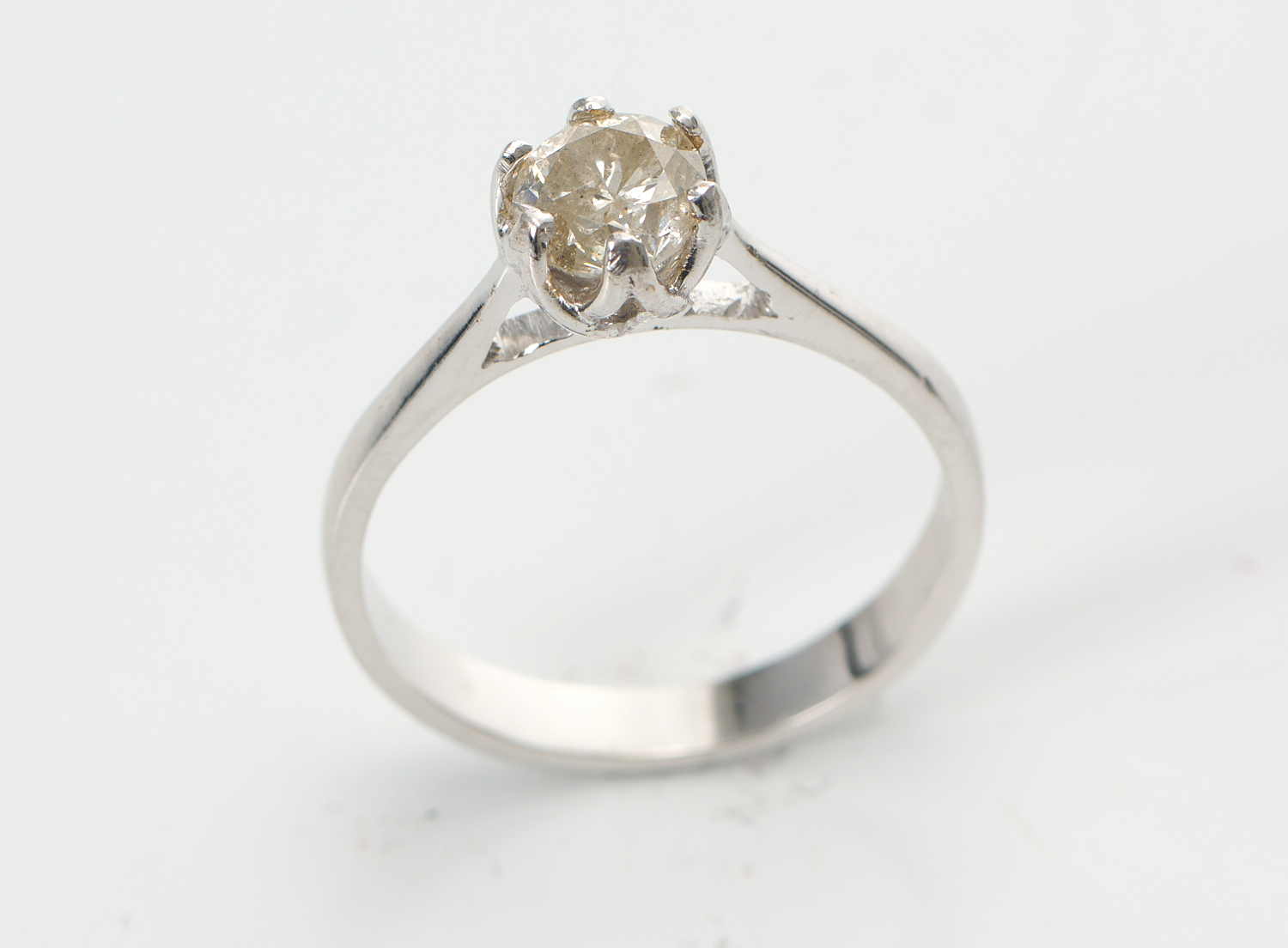 A SOLITAIRE DIAMOND RING IN 18CT WHITE GOLD, THE ROUND BRILLIANT CUT DIAMOND ESTIMATED 0.50CTS, SIZE L, 2.5GMS