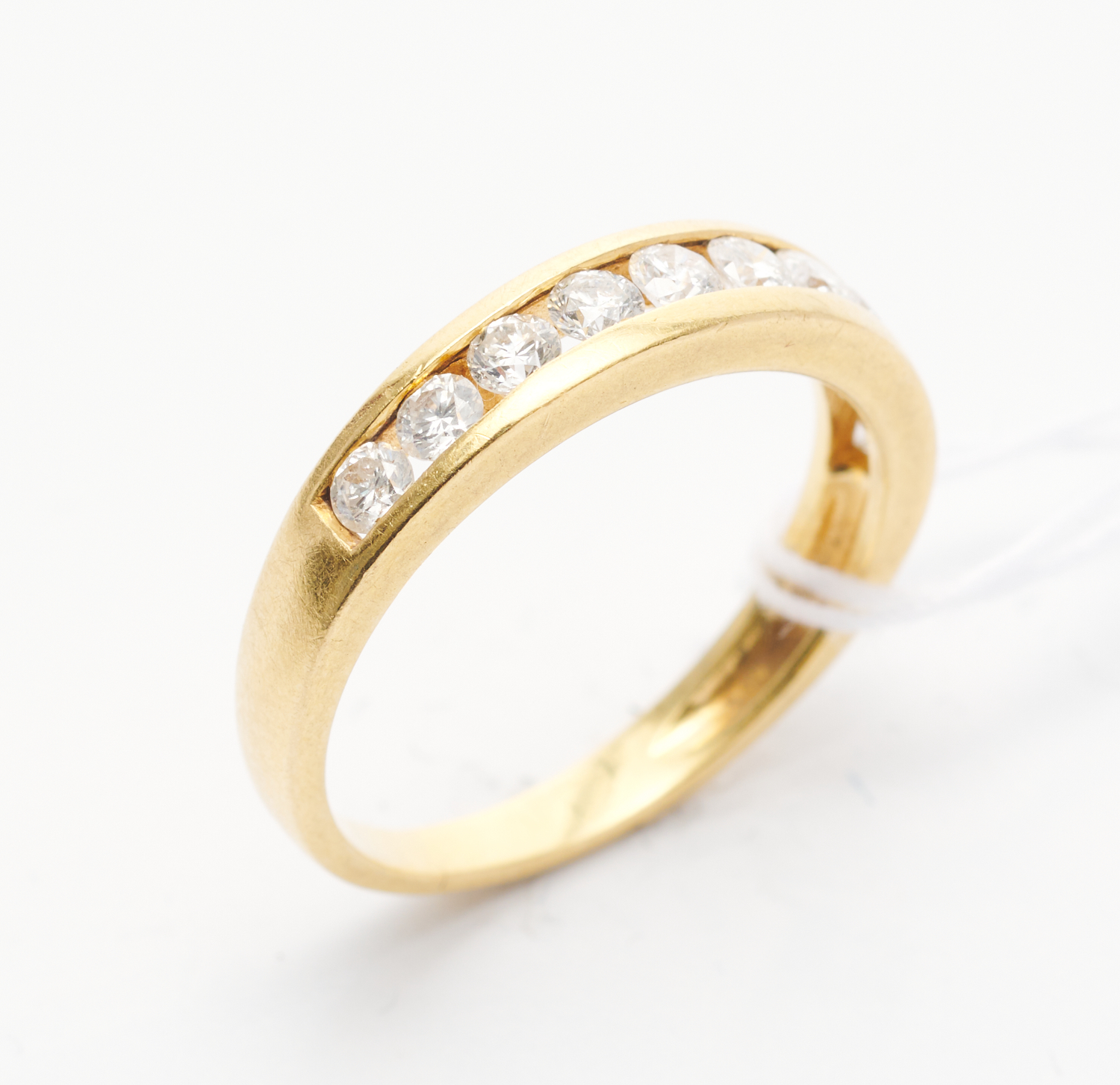 A DIAMOND RING IN 18CT GOLD, FEATURING TEN ROUND BRILLIANT CUT DIAMONDS OF 0.05CT EACH APPROXIMATELY, SIZE M-N, 3.4GMS