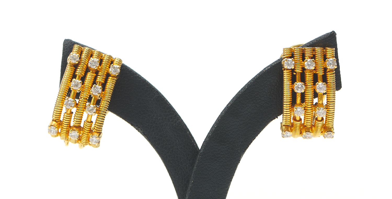 A PAIR OF DIAMOND EARRINGS - Each earring of curved bar design, featuring ten diamonds totalling an estimated 0.35cts, to screw back post and clip fittings, in 18ct gold.