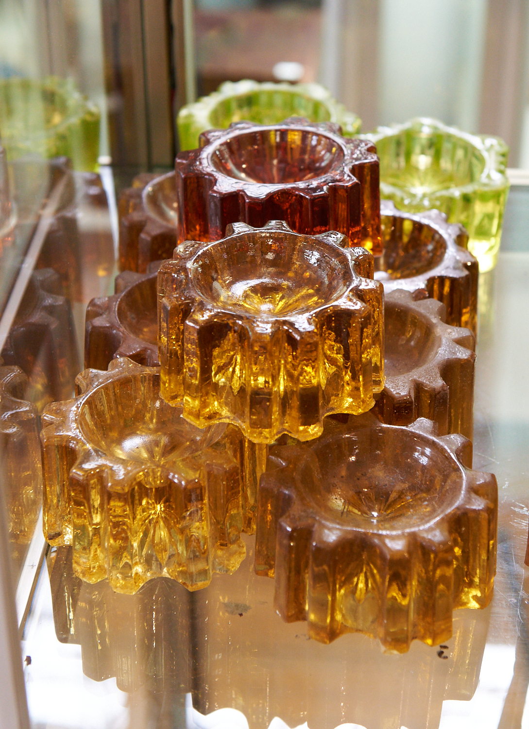 FIVE ANTIQUE GLASS PIANO CASTOR CUPS, LEONARD JOEL LOCAL DELIVERY SIZE: SMALL